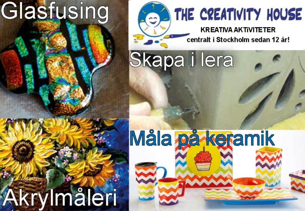 Måla en vacker tavla med akrylfärger, testa på glasfusing, skapa egna alster i lera eller måla företagets kaffemuggar. The Creativity Houes är en keramik & glas-studio som har funnits i mer än 11 år! Vi erbjuder aktiviteter för företagsgrupper som keramikmålning, skapa egna glassmycken, akrylmåleri på kanvas, skapa i lera...